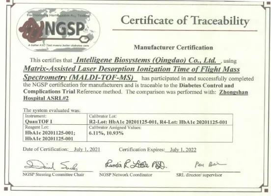 全球首個獲得國際權(quán)威機構(gòu)NGSP認(rèn)證的飛行時間質(zhì)譜方法